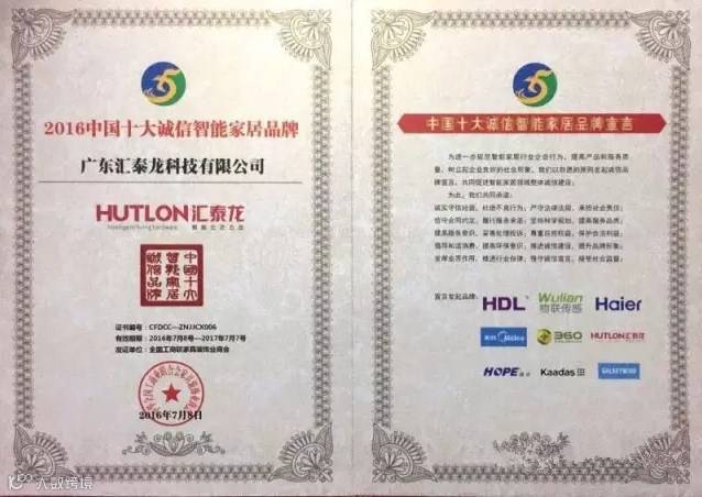 因此,无论是这次的“中国十大诚信智能家居品牌”,还是近期的“连续13年获广东省守合同重信用企业”荣誉,都是对汇泰龙恪守诚信、规范经营的有力印证,同时也是对汇泰龙品牌信誉的充分肯定。