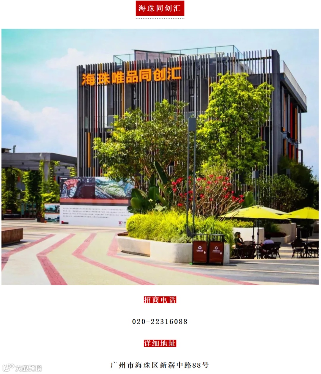 海珠同创汇从昔日“脏乱差”的城中村布匹仓库变身网红打卡地,从物业空间进行整体形象提升,从建筑布局化零为整,将建筑与绿色生态相融合,随处可见的艺术墙绘涂鸦为园区增添色彩,打造成为一个有氧呼吸的时尚综合体。