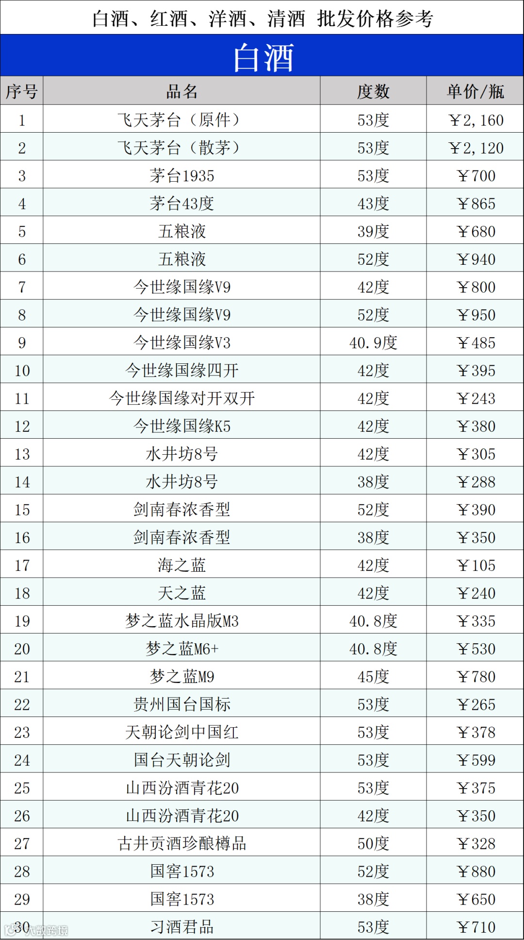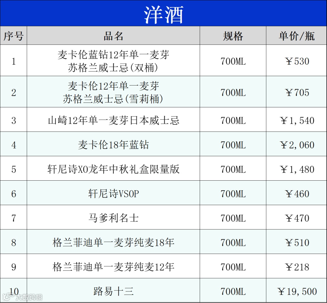 今日(4月25日),每周一次的价格更新又来了。依照市场调研的价格行情数据,整理酒类行货价格成下表给大家参考。以下所有酒类商品报价,均为商超可用的行货调货价格。