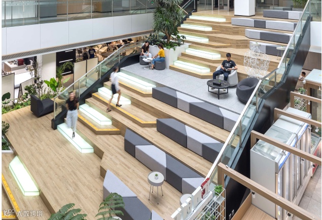 路演中心/大台阶:音响设备、麦克风、足量会议椅、会议桌。
