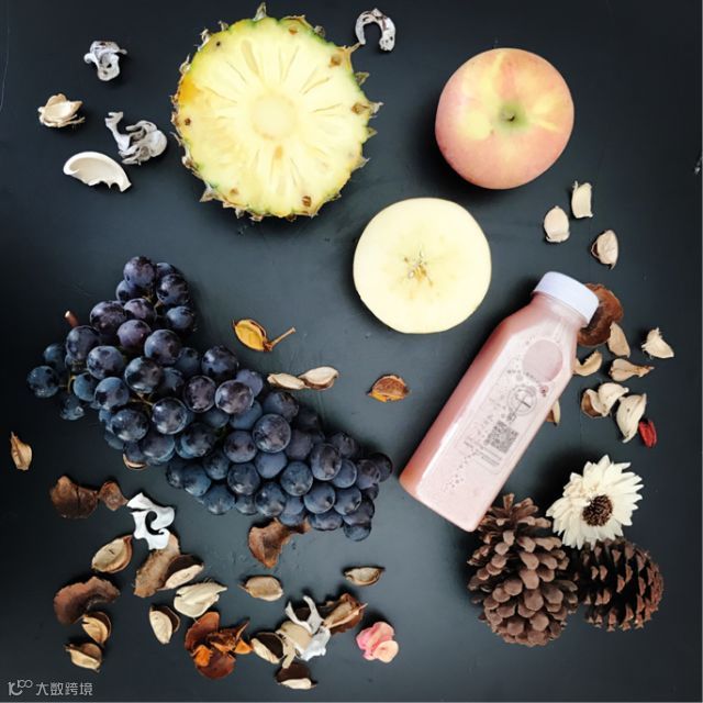 口感温和的抗氧化果汁,高花青素,维生素C和食物纤维。玫瑰香不是花,是葡萄,又名紫玫瑰香等。欧亚种,原产英国,是世界上著名的鲜食、酿酒、制汁的兼用品种,比起普通的紫葡萄,玫瑰香富含更多抗氧化的花青素,是女士皮肤保养的佳品。菠萝富含维生素C和食物纤维,提高人体的免疫力。苹果中和了菠萝的酸,玫瑰香的抗氧化成分又保证了苹果果汁不会受到氧化的影响,果汁味道酸酸甜甜的,特别适合夏天的午饭后来一杯解腻。