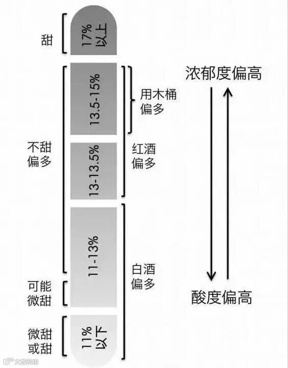 ◈ 而极低或是极高酒精度(低于11°或者高于17°)一般意味着这款酒是甜型的