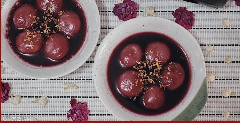 红红的汤汁,圆滚滚的汤圆,松软的糯米,滚烫的馅料,不仅好喝,还能化解汤圆的甜腻,帮助肠胃消化哦~
