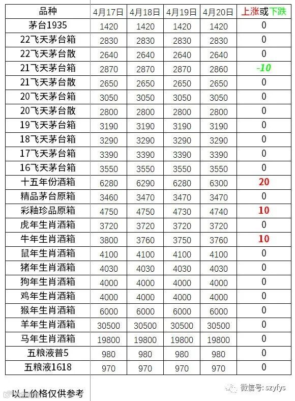 今日(4月20日),从网络发布的白酒价格行情监测数据显示,这几天茅台几款酒的售价下跌中。