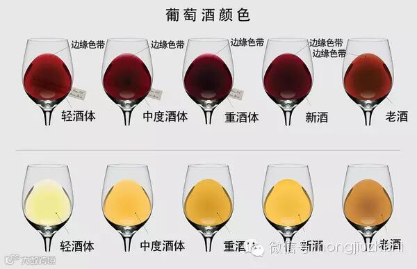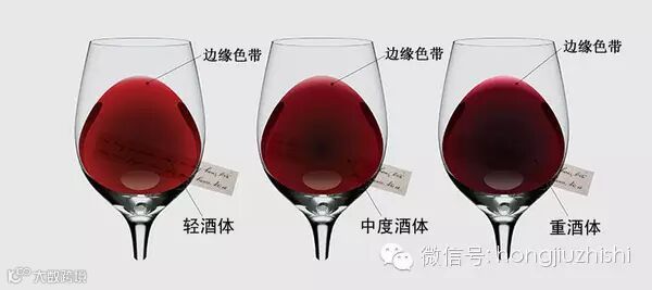 陈年越久的葡萄酒其边缘色带越宽,而边缘色带越窄也就说明该酒的酒龄较短。