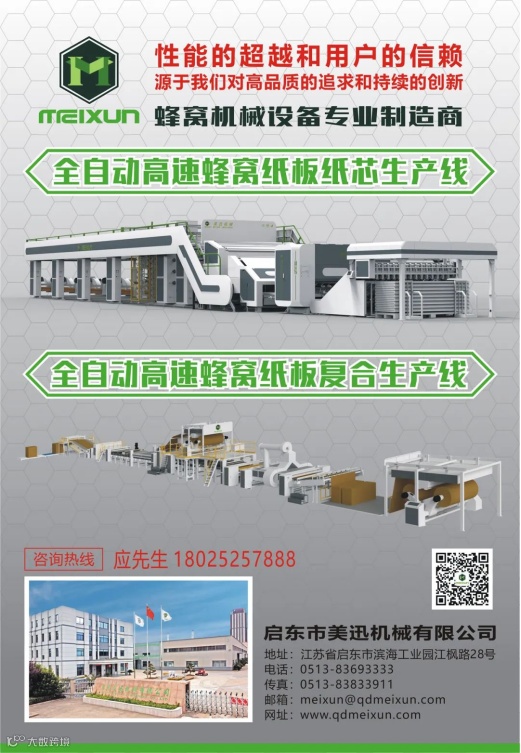 行业新蓝海,投资新方向。在本次大会的赞助商展位B-2区(樵山文化中心c馆一层)的A20展位上,美迅机械工作人员将携最新的宣传资料精彩亮相,期待与广大新老客户及行业各界嘉宾交流合作情谊,共话蜂窝包装行业的美好未来。