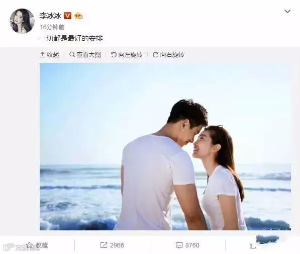 李冰冰晚上也在微博回应了“一切都是最好的安排”