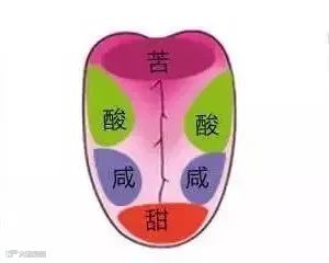 嗯,下面这张丑爆了的图是人体舌头的4个味觉区域。我们对葡萄酒的品尝通常是通过鼻子和舌头,鼻子是闻香,舌头是尝酒。舌尖对甜味最敏感,舌面中前部对咸味敏感,舌面后部对苦味敏感,舌头的两侧则对酸度敏感,大家可以在日后品酒时多加感受。