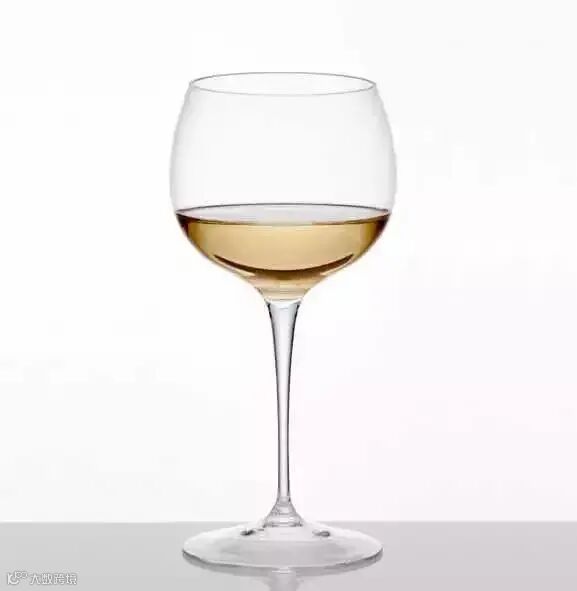 霞多丽杯:霞多丽白葡萄酒酒精含量高、果酸低、酒质醇厚。同样是较小体积的白酒杯,霞多丽杯与勃垦地红酒杯有相似的大肚杯身,而较陡的杯壁可以令酒液入口的扩散效果更佳,杯口的设计令酒入口时先流向舌头中部,然后向四面散开,才能使酒的各种成分产生和谐的感觉。