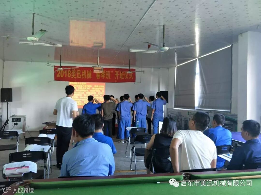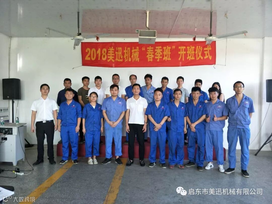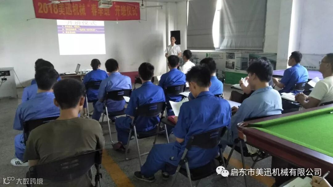 启东市美迅机械有限公司2018年7月14日,第一届新生开班仪式由陈章荣老师主持,董事长应树丰致辞。由湖南科技大学、湖南工程学院、湖南农业大学的应届毕业生及企业技术部、操作部、行政部、销售部、生管部等人员参加。