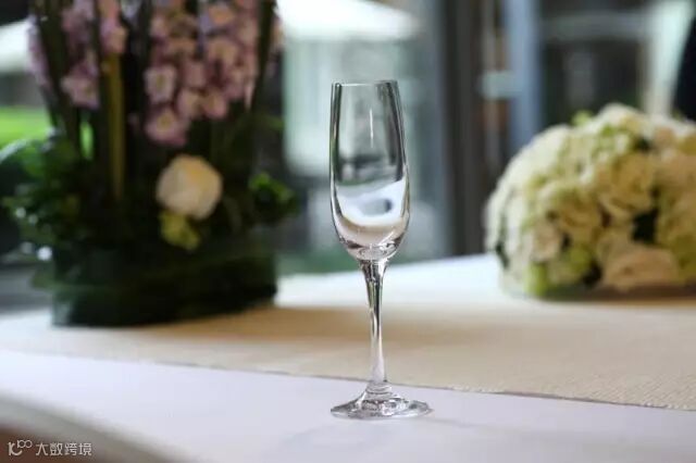 酒杯:瓶身细长的笛形杯可以突出香槟的酵母香气和其他雅致芬芳,增强它如奶油般顺滑的质地,延长气泡的存留时间。
