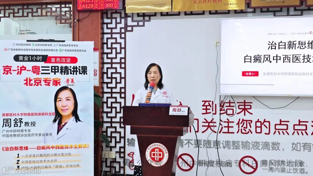 迈入崭新八月,我院依然秉持“在家门口治白斑 - 看北京专家”的理念,特邀首都医科大学附属医院皮肤科主任周舒教授,接力参与本次暑夏名医会诊行动。在会诊间隙,周舒教授为广大患者朋友们带来了一场《治白新思维 - 白癜风中西医技术全解读》的专题讲座,详细诠释了如何通过中医辨证施治与西医精准直击相互结合的方式治白斑,促复色。