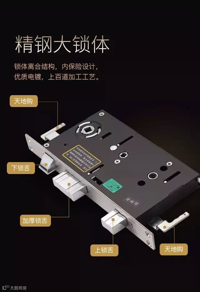 精钢大锁体,双构锁舌设计,保护家居更安全