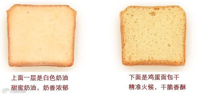 细腻的奶油包裹着香浓的鸡蛋面包干,一口咬下去,奶油香甜的味道紧接着而来的是面包干的香酥口感!