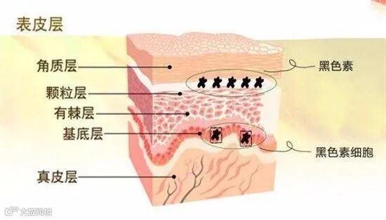 人体皮肤颜色主要因黑色素细胞的活性差异而不同,但皮肤颜色都不一定随黑色素细胞内黑色体增加而加深,而主要取决于黑色体从黑色素细胞向临近角朊细胞移行的过程是否通畅。如皮肤炎症后色素脱失就是由于表皮细胞受损后,黑色体不能通过表皮细胞通畅排泄,而导致黑色体阻于黑色素细胞内,使继发黑色素细胞功能减退。