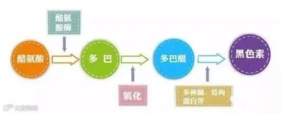 以抗坏血酸(维生素C)为例,如在这一反应中加入抗坏血酸,就会阻止多巴进一步氧化为多巴色素,并使已合成的多巴酶被还原为多巴,以致黑色素不能合成。