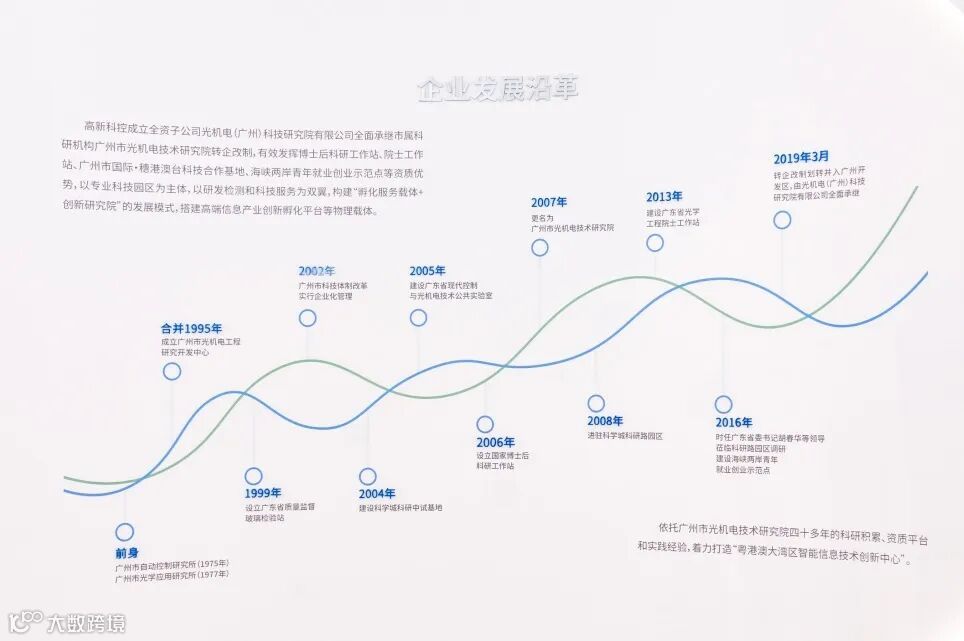 从广州市自动控制研究所、广州市光学应用研究所相继诞生,到合并成立光机电科技公司前身广州市光机电技术研究院,依托国家博士后科研工作站、广东省光学工程院士工作站,省公共实验室、市重点实验室等,构建了研发平台、人才平台、五大检测平台和国际合作平台的省新型研发机构体系,光机电科技公司积淀了近50年的科研实力。