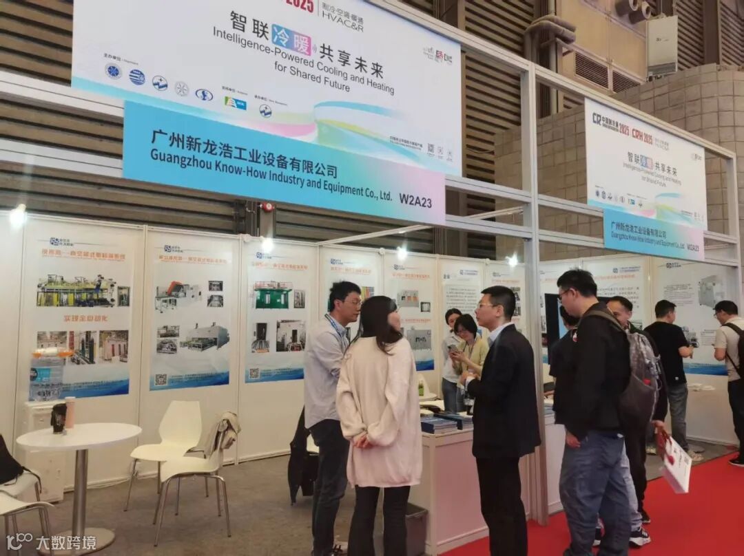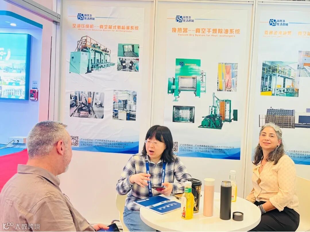 展会期间,新龙浩带着制冷行业相关的最新氦检漏方案来到展位上,为驻足展位的业内各界人士热情解说。