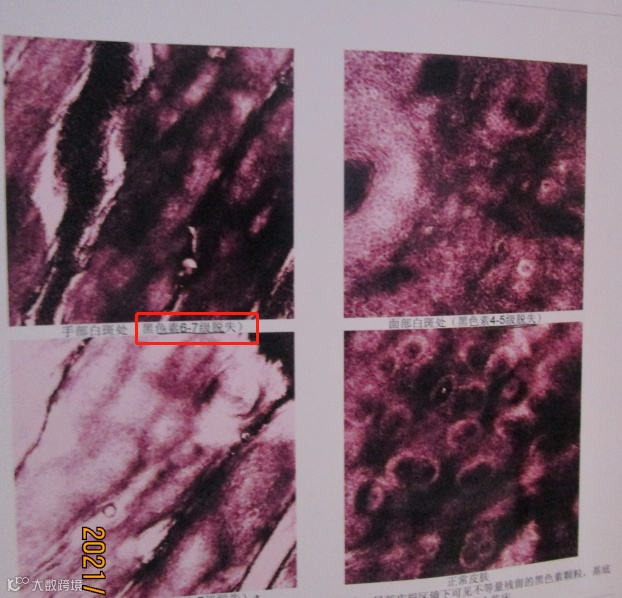 • 表面白斑没有了,但皮损处的黑素细胞功能并未恢复正常水平。