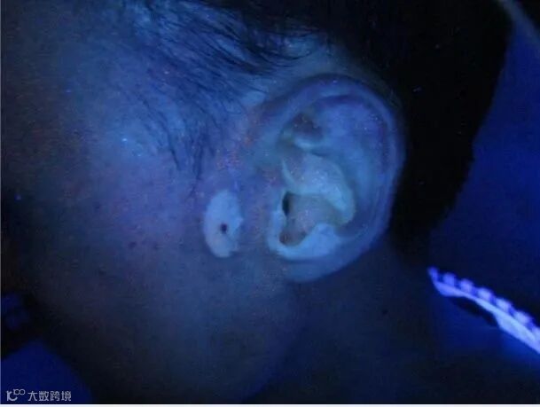 隐性白斑与外显白斑一样,可通过德国Wood灯确诊。