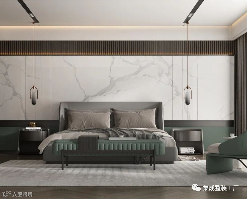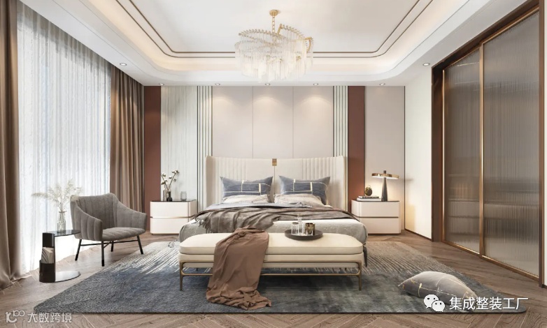 现代轻奢风格装修的主体装修比较简洁,但也不像现代简约那样随意,用于装饰的壁纸和家具线条优美,会用一些纺织品和皮毛来装饰,在看似简洁的外表下,给人一种低调奢华有内涵的感觉。