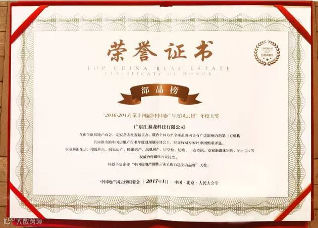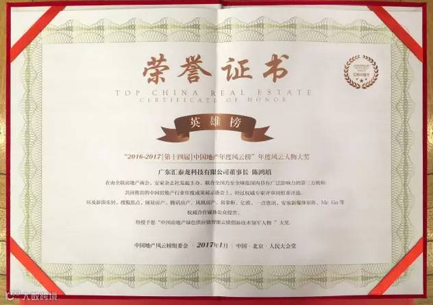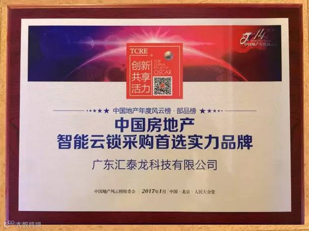 汇泰龙作为房地产行业的上下游企业,能在这“地产领袖级人物最齐阵容”的颁奖盛典上荣获“中国房地产智能云锁采购首选实力品牌”,荣登“2016-2017[第十四届]中国地产年度风云榜”,充分体现出汇泰龙云锁在房地产、家装、木门企业和终端消费者心目中的地位。
