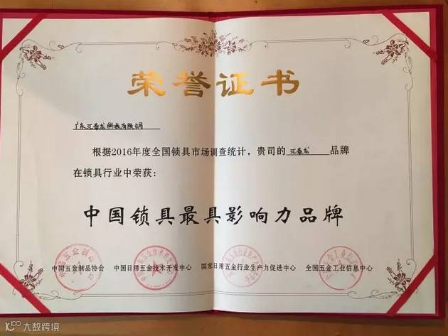 ▲中国锁具最具影响力品牌
