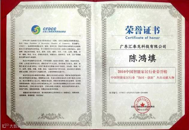 在“互联网+”国家战略大背景下,汇泰龙董事长陈鸿填先生想到将“互联网+”与智能门锁结合起来,在这个想法的驱使下,汇泰龙投入大量研发资源,于2016年创研出汇泰龙云锁,受到房地产行业的认可与肯定,一举荣获“中国房地产绿色供应链智能云锁创新技术领军人物”。