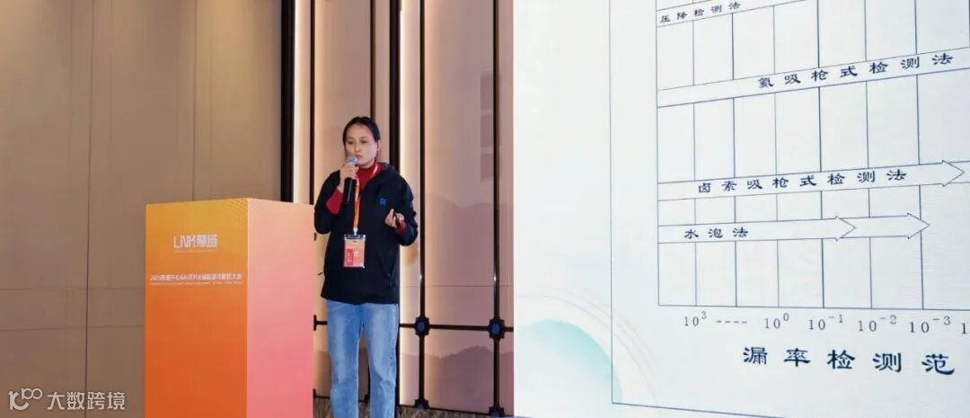 12月1日下午,新龙浩作为演讲嘉宾,演讲了提为【氦检漏系统的高精度应用分享】演讲现场座无虚席,近200位行业专业人士聆听了这场技术分享。王玉配女士从液冷系统密封性面临的挑战入手,系统阐述了氦检漏技术的基本原理、应用场景与发展趋势。