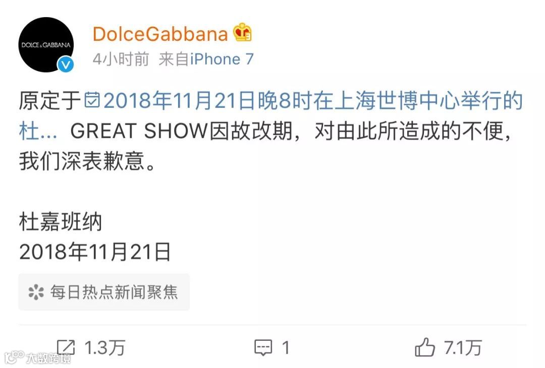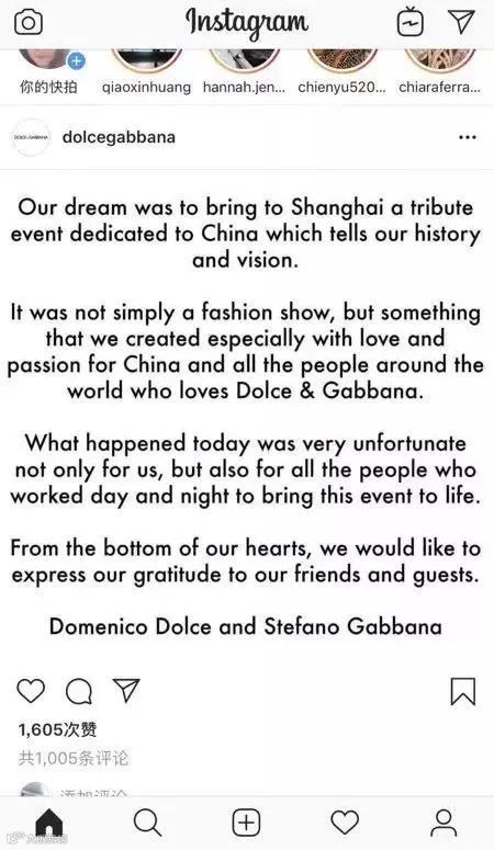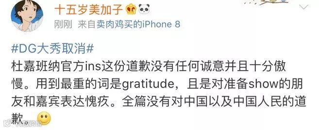 D&G又发声:只提“不幸”,未见歉意