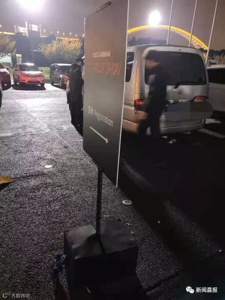 各个出入口都站着几名安保人员,另一个侧门门口还立着杜嘉班纳品牌秀签到处的牌子,但进进出出的不是模特和嘉宾,而是正在撤离各种工作道具器材的工作人员。