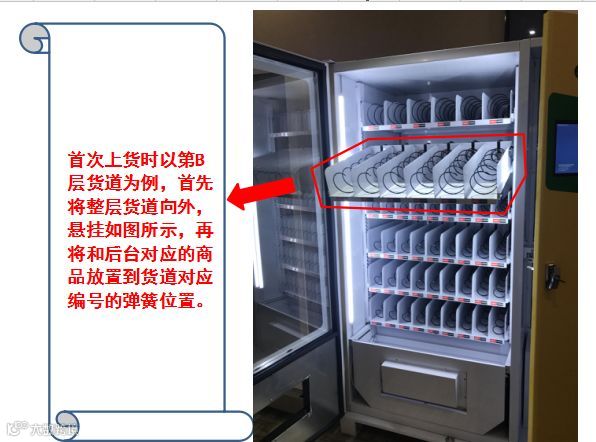 3、包装较大的商品,可摆放在弹簧中间位置;瓶装饮料类可依据弹簧曲度,有倾斜度进行摆放。