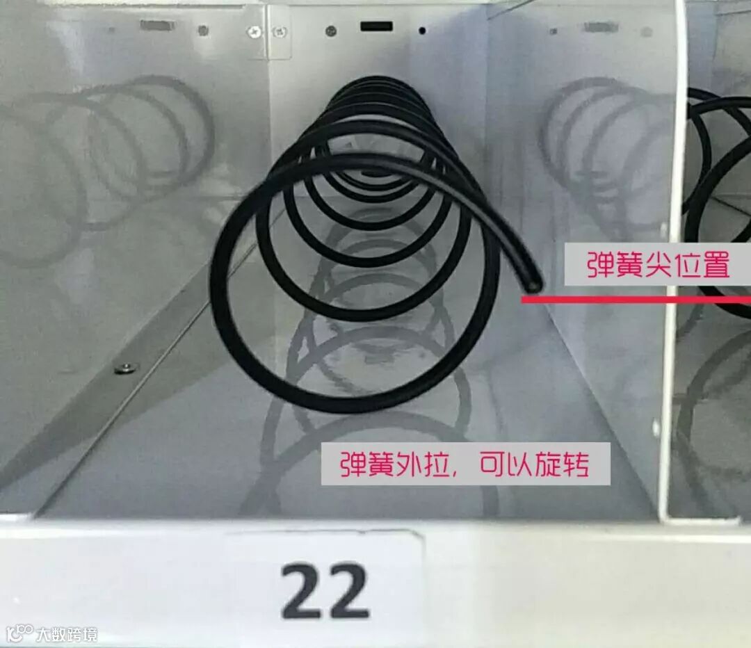 2、轻轻向外拉动弹簧,弹簧尖端位置在右侧,如下图22所示↓