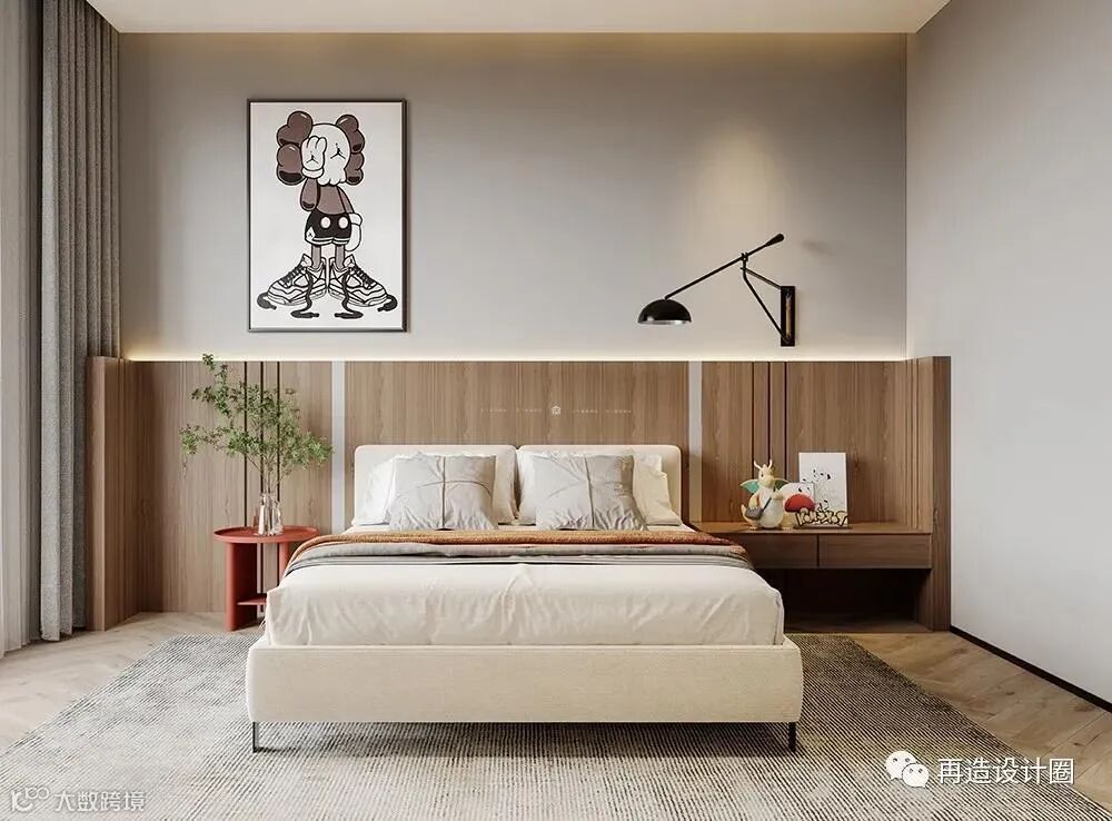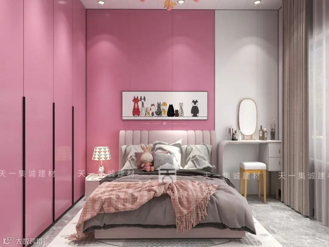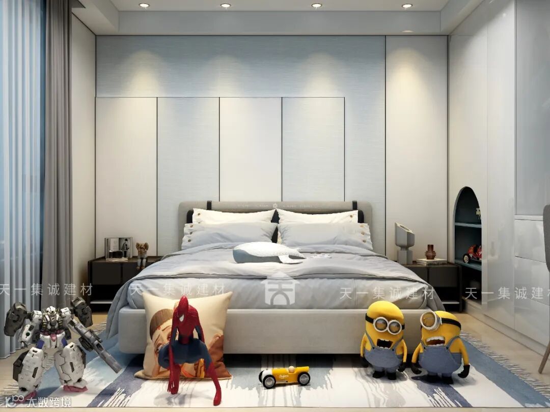 色彩是儿童房有别于成年人房间的元素之一,儿童房的配色设计不建议采用黑色灰色等深色,避免产生压抑的感受,而是需要采用明度高的色彩、活泼大胆的配色。