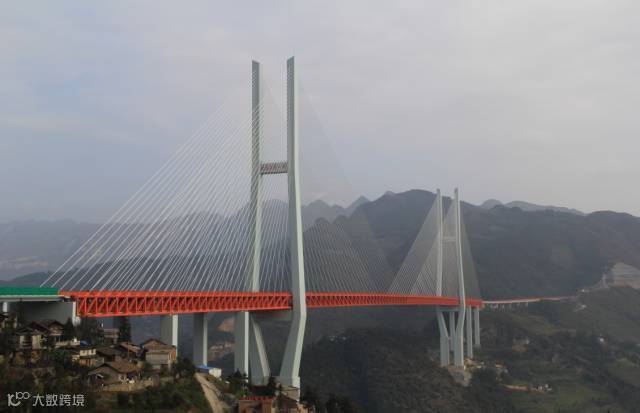 12月29日,横跨贵州省六盘水市都格镇和云南省宣威市普立乡的北盘江大桥正式建成通车。大桥由云贵两省合作共建,全长1341.4米,桥面到谷底垂直高度565米(这比咱湖北简直逆天的四渡河大桥还要高5米啊!),相当于200层楼高——这也是目前世界上最高的大桥。