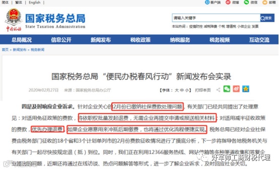 国家税务总局“便民办税春风行动”新闻发布会提出,2月份已缴纳的社保费将批量发起退费,无需企业再提交申请或报送相关材料!