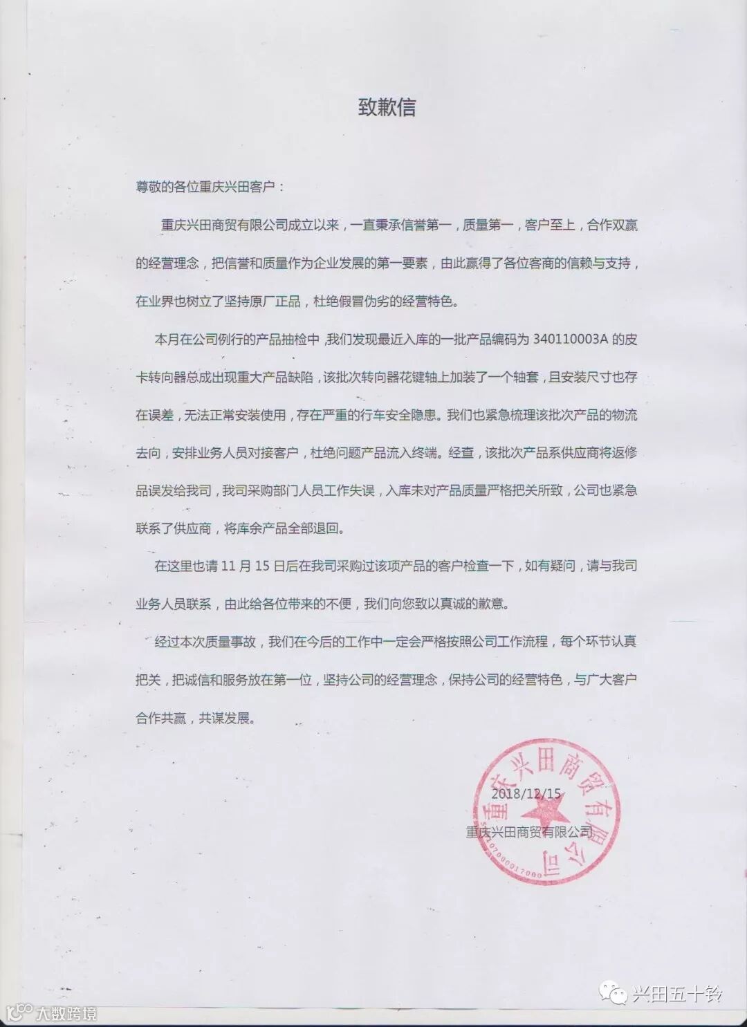 导读:勇于面对问题 做有责任感的良心企业