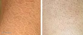 (细纹干裂、鸡皮明显)