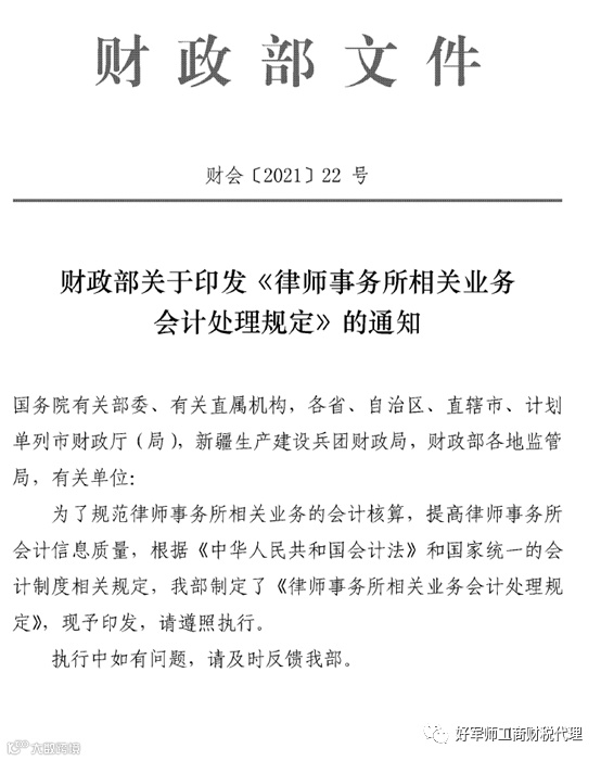 财政部印发《律师事务所相关业务会计处理规定》的通知财会〔2021〕22号