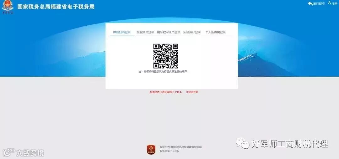 首先,我们用已实名注册过的微信扫码登录国家税务总局福建省电子税务局。