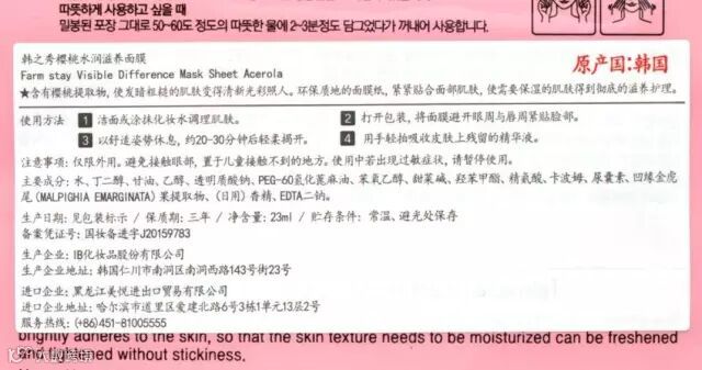 Farm Stay面膜由韩国著名化妆品公司(株)明人化妆品公司生产提供,产品精选上等原材料加之非常科学先进的的配方,使得Farm Stay面膜效果卓越,品质超群,产品远销至美国、德国、台湾、中国等地,在本土也深受韩国人喜爱。黑龙江美悦进出口贸易有限公司为(株)明人化妆品公司在中国的唯一战略合作伙伴,也是在中国的唯一合法代理商,Farm Stay系列面膜产品已经取得中国国家食品药品监督管理局检验合格报告。