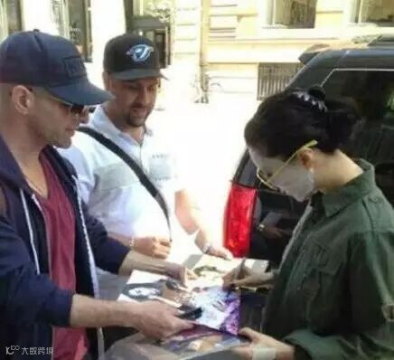 面膜墨镜,还能配合给粉丝签名。真是时尚时尚最时尚。