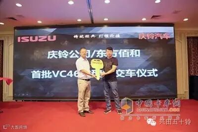 简洁庄重的庆铃与东方佰和公司战略合作协议签字仪式,庆铃与东方佰和首批VC46重型车交车仪式,将活动推向高潮。大家共同见证了一个美好时刻,建立追求共赢、共创辉煌的初心!让我们始终不忘初心,在追求价值的路上永不停步!庆铃西北大区负责人郑岗、东方佰和徐志东总经理、新疆西蒙总经理曹德贤携手践行在战略合作大道上迈出第一步,举行首批5台车VC46重型车交车仪式。