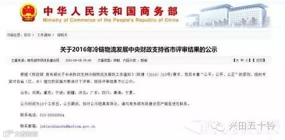 近日,国家商务部官方网站对2016年冷链物流发展中央财政支持省市评审结果进行了公示。