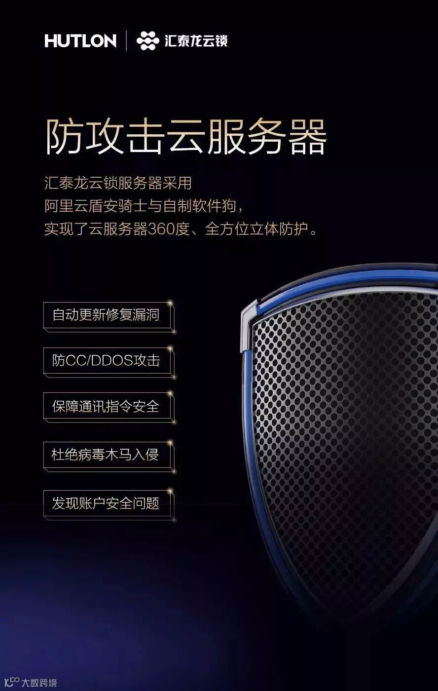 ▲汇泰龙云锁拥有多重防盗系统,猫眼防撬,防磁防钻防震,安全云服务功能,远程24小时监控多项防盗功能……