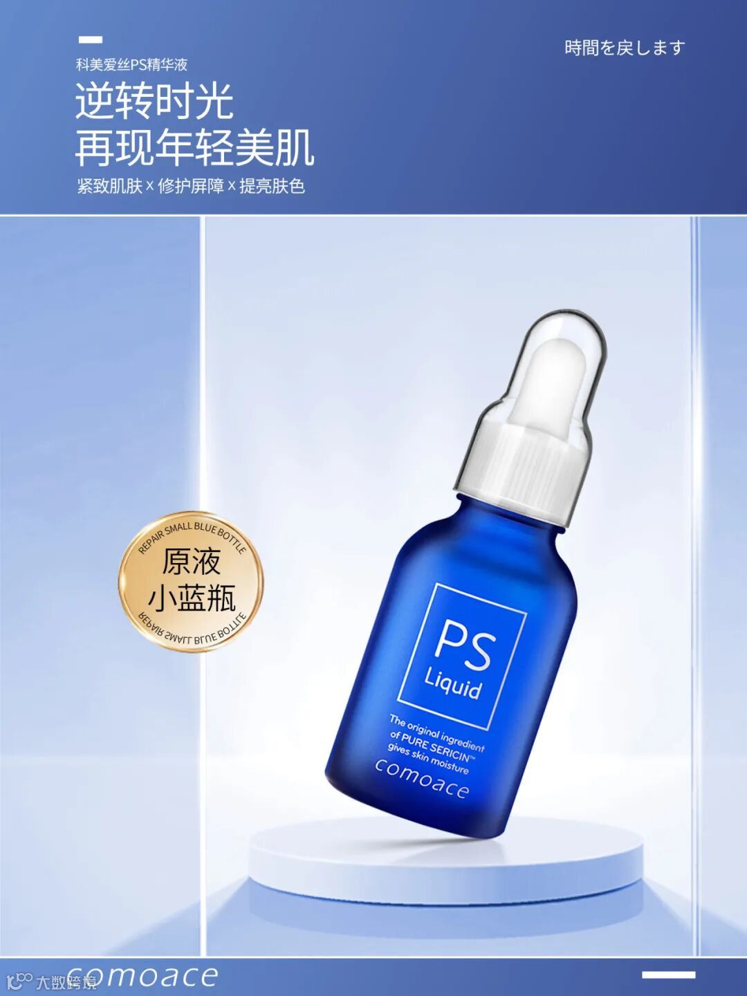 这款PS小蓝瓶之所以特别,是因为它的浓缩程度非常高。一滴它相当于三滴普通精华液的浓度,这意味着你只需使用少量的产品,就可以获得很好的效果。这不仅节省了产品的用量,还确保每一滴精华,都充满了纯丝胶成分的力量~