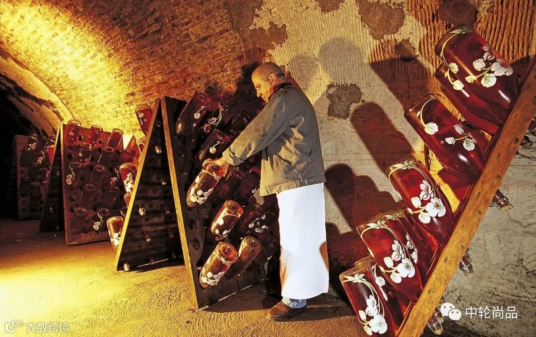 转瓶:将瓶子倒置,让沉淀堆积在瓶口。为了让沉淀全部集中在瓶口,专业操作人员每隔一定时间转动一下酒瓶,持续6周到3个月。