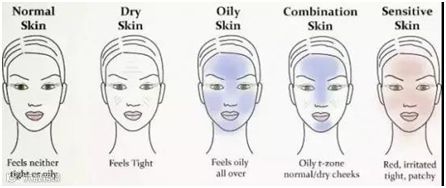 混合性皮肤兼有油性皮肤和干性皮肤两种特征,表现为面部T型区(前额、鼻部、口周、下颌)油脂分泌量多,角质层厚,容易长粉刺、痘痘;两颊油脂较少,皮肤纹理细致,但容易干燥。