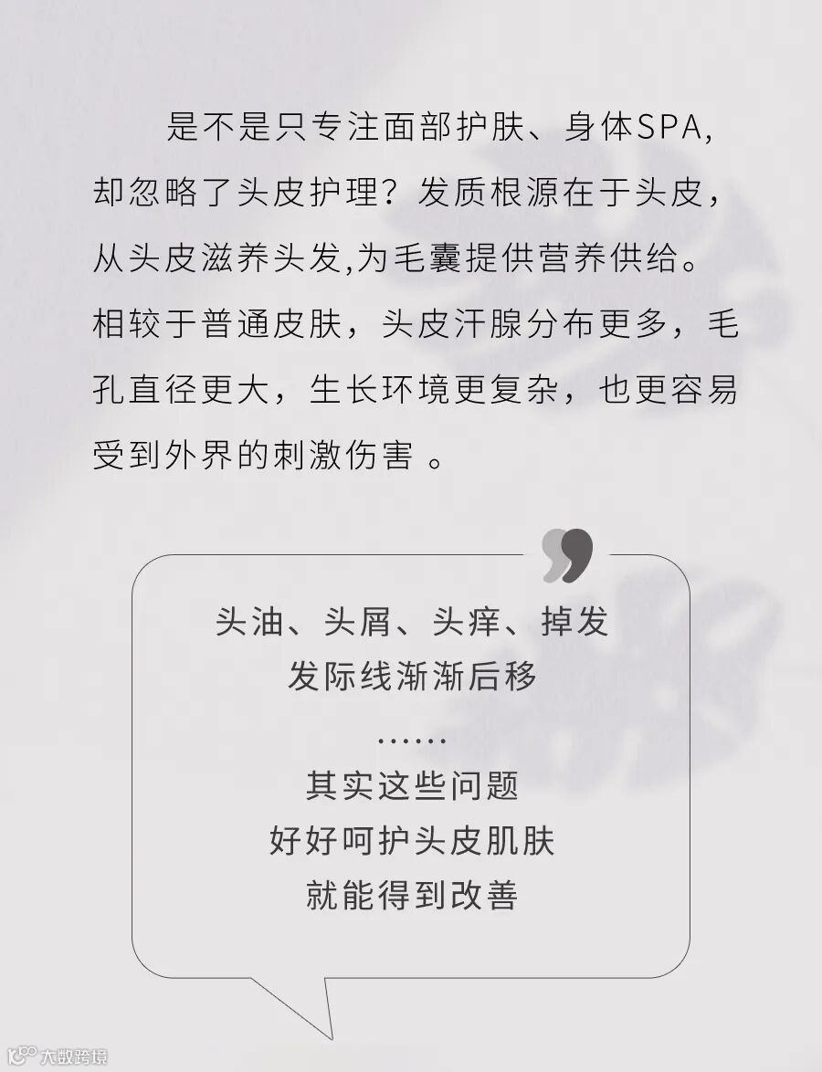 导读:是不是只专注面部护肤,身体SPA,却忽略了头皮护理?