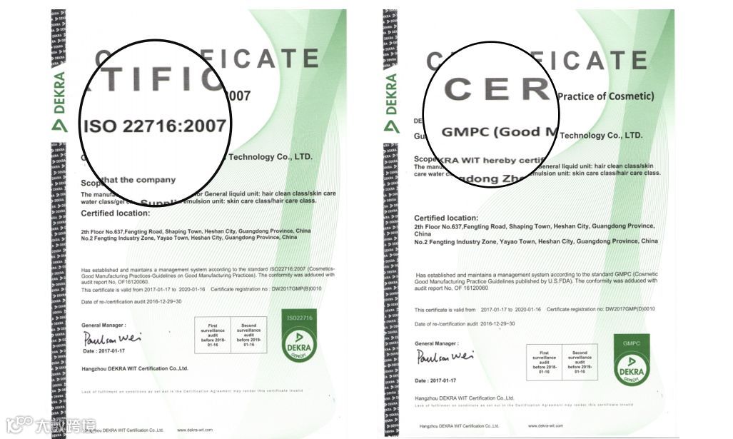 通过国际标准化组织(ISO)制定发布的针对化妆品行业的质量管理体系标准认证,而ISO22716是化妆品进入欧盟的强制性要求。GMPC证书则是进入美洲市场的标准证书,茉莉宝贝的生产标准是按照国际标准生产并销售的,成分有着权威机构检测保障。